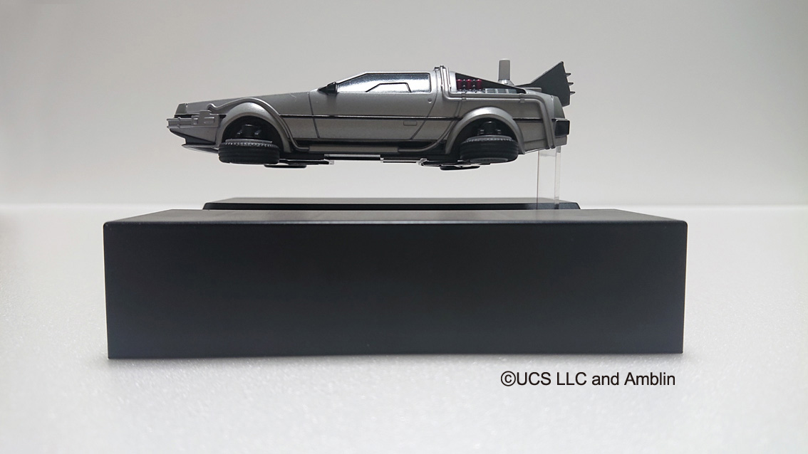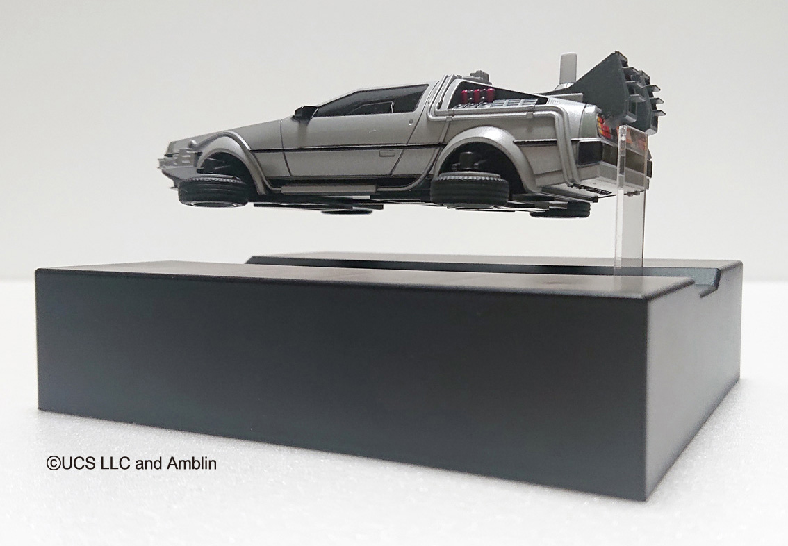 大ヒット映画『バック・トゥ・ザ・フューチャーPART2』に登場する“タイムマシン”の空中浮上を磁力により再現し、ご好評いただきました1/43スケールフィギュア「フローティングモデル バック・トゥ・ザ・フューチャーPart2 タイムマシン」が フルカラーになりました!